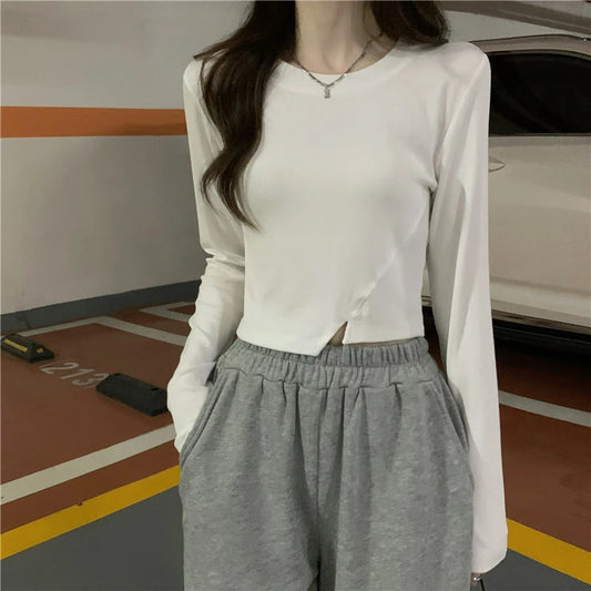 Women’s Vintage Y2K Crop Top Solid Long Sleeve Tee